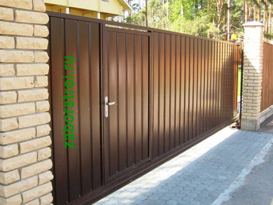 Откатные ворота с калиткой пример 4