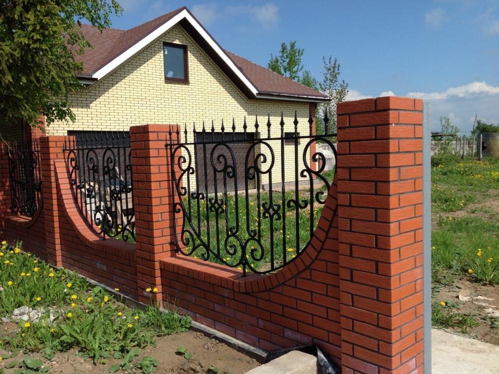 Сварные заборы с кирпичными столбами 70 метров